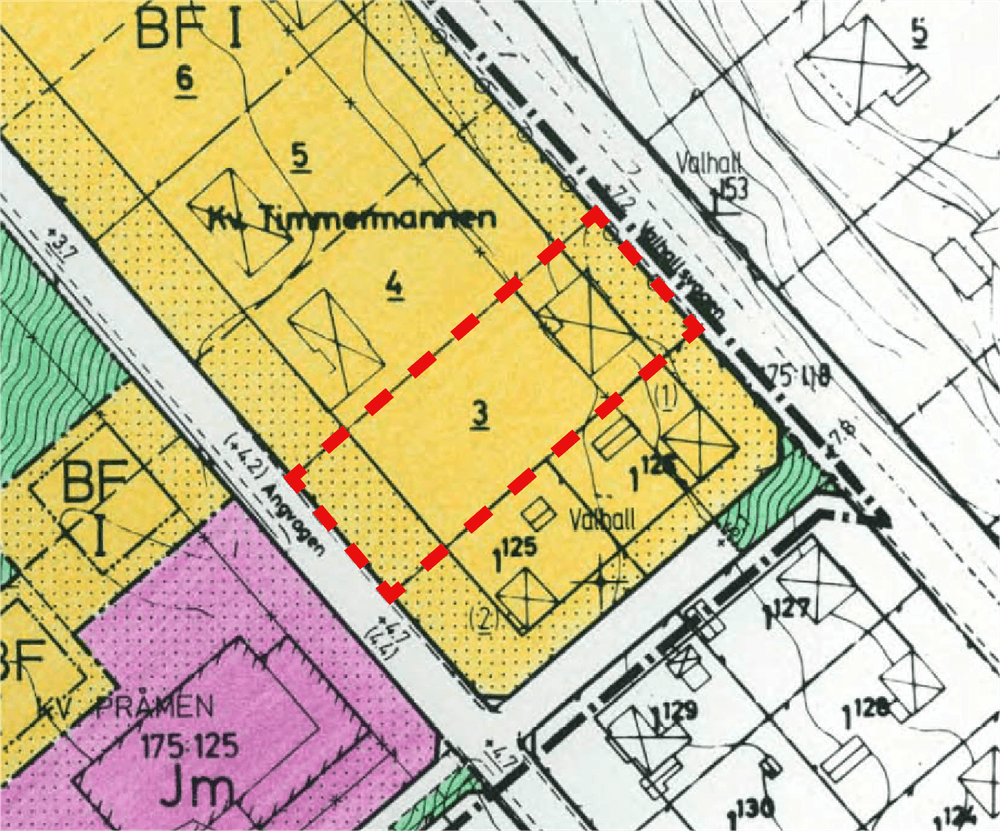 Planområdet är detaljplanelagt sedan tidigare och omfattas av detaljplan B 546 från år 1986. Detaljplanen medger markanvändningen bostäder, fristående hus i en våning. Största byggnadsarea är 200 kvadratmeter varav huvudbyggnaden maximalt får vara 150 kvadratmeter. För aktuell fastighet råder utfartsförbud mot Valhallsvägen. Genomförandetiden för detaljplanen har gått ut.